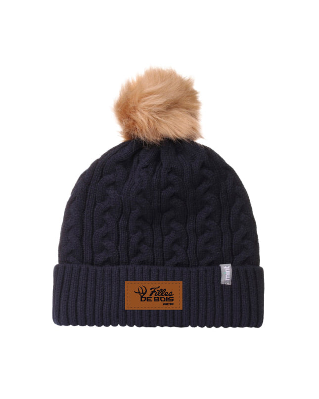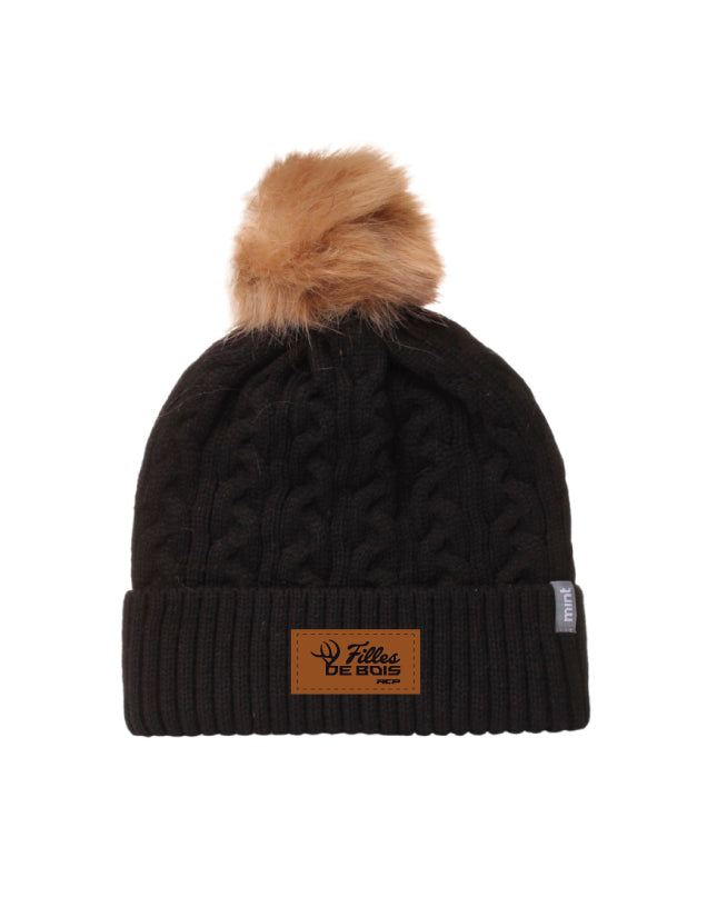 Tuque avec pompon Fille de bois - Écusson Brun