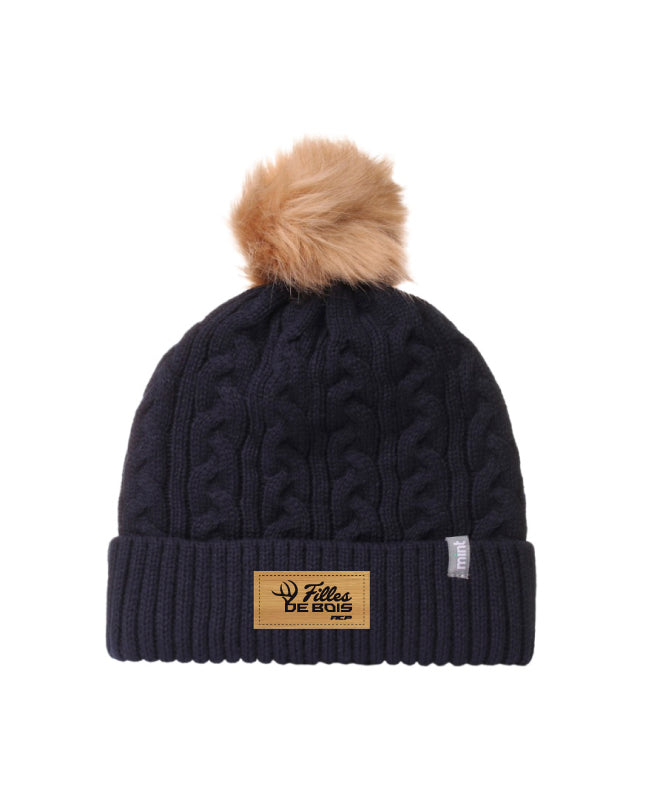 Tuque avec pompon Fille de bois - Écusson couleur Bambou